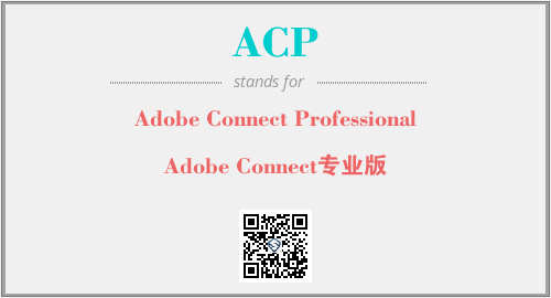 英文缩略词“ACP”经常作为“Adobe Connect Professional”的英文缩写来使用,中文表示:“Adobe Connect专业版”。本文将详细介绍英文缩写词ACP所代表英文单词,其对应的中文拼音、详细解释以及在英语中的流行度。此外,还有关于缩略词ACP的分类、应用领域及相关应用示例等。