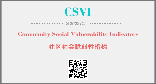 上述内容是“Community Social Vulnerability Indicators”作为“CSVI”的缩写,解释为“社区社会脆弱性指标”时的信息,以及英文缩略词CSVI所代表的英文单词,其对应的中文拼音、详细解释以及在英文中的流行度和相关分类、应用领域及应用示例等。