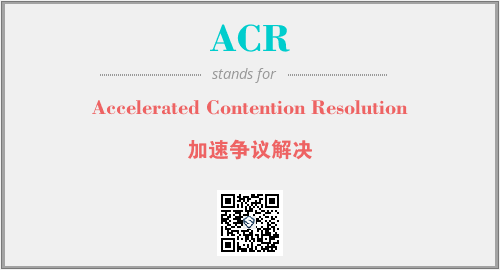 上述内容是“Accelerated Contention Resolution”作为“ACR”的缩写,解释为“加速争议解决”时的信息,以及英文缩略词ACR所代表的英文单词,其对应的中文拼音、详细解释以及在英文中的流行度和相关分类、应用领域及应用示例等。