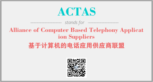 以上为Alliance of Computer Based Telephony Application Suppliers英文缩略词ACTAS的中文解释,以及该英文缩写在英语的流行度、分类和应用领域方面的信息。