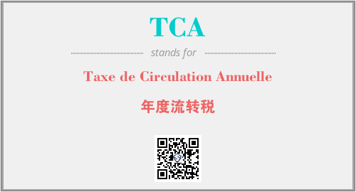 英文缩略词“TCA”经常作为“Taxe de Circulation Annuelle”的英文缩写来使用,中文表示:“年度流转税”。本文将详细介绍英文缩写词TCA所代表英文单词,其对应的中文拼音、详细解释以及在英语中的流行度。此外,还有关于缩略词TCA的分类、应用领域及相关应用示例等。
