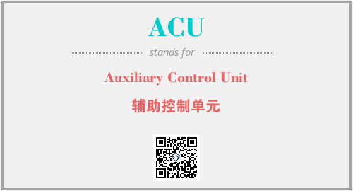 英文缩略词“ACU”经常作为“Auxiliary Control Unit”的英文缩写来使用,中文表示:“辅助控制单元”。本文将详细介绍英文缩写词ACU所代表英文单词,其对应的中文拼音、详细解释以及在英语中的流行度。此外,还有关于缩略词ACU的分类、应用领域及相关应用示例等。