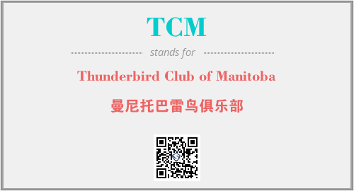 英文缩略词“TCM”经常作为“Thunderbird Club of Manitoba”的英文缩写来使用,中文表示:“曼尼托巴雷鸟俱乐部”。本文将详细介绍英文缩写词TCM所代表英文单词,其对应的中文拼音、详细解释以及在英语中的流行度。此外,还有关于缩略词TCM的分类、应用领域及相关应用示例等。
