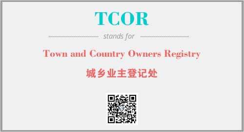 上述内容是“Town and Country Owners Registry”作为“TCOR”的缩写,解释为“城乡业主登记处”时的信息,以及英文缩略词TCOR所代表的英文单词,其对应的中文拼音、详细解释以及在英文中的流行度和相关分类、应用领域及应用示例等。