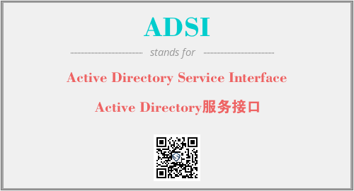 英文缩略词“ADSI”经常作为“Active Directory Service Interface”的英文缩写来使用,中文表示:“Active Directory服务接口”。本文将详细介绍英文缩写词ADSI所代表英文单词,其对应的中文拼音、详细解释以及在英语中的流行度。此外,还有关于缩略词ADSI的分类、应用领域及相关应用示例等。
