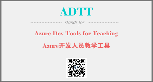 英文缩略词“ADTT”经常作为“Azure Dev Tools for Teaching”的英文缩写来使用,中文表示:“Azure开发人员教学工具”。本文将详细介绍英文缩写词ADTT所代表英文单词,其对应的中文拼音、详细解释以及在英语中的流行度。此外,还有关于缩略词ADTT的分类、应用领域及相关应用示例等。
