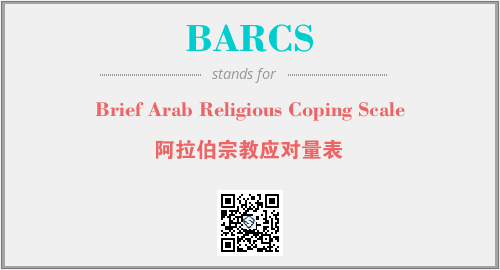 英文缩略词“BARCS”经常作为“Brief Arab Religious Coping Scale”的英文缩写来使用,中文表示:“阿拉伯宗教应对量表”。本文将详细介绍英文缩写词BARCS所代表英文单词,其对应的中文拼音、详细解释以及在英语中的流行度。此外,还有关于缩略词BARCS的分类、应用领域及相关应用示例等。