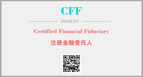 上述内容是“Certified Financial Fiduciary”作为“CFF”的缩写,解释为“注册金融受托人”时的信息,以及英文缩略词CFF所代表的英文单词,其对应的中文拼音、详细解释以及在英文中的流行度和相关分类、应用领域及应用示例等。