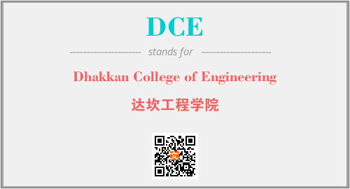 上述内容是“Dhakkan College of Engineering”作为“DCE”的缩写,解释为“达坎工程学院”时的信息,以及英文缩略词DCE所代表的英文单词,其对应的中文拼音、详细解释以及在英文中的流行度和相关分类、应用领域及应用示例等。
