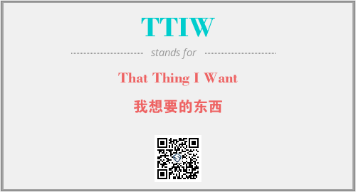 上述内容是“That Thing I Want”作为“TTIW”的缩写,解释为“我想要的东西”时的信息,以及英文缩略词TTIW所代表的英文单词,其对应的中文拼音、详细解释以及在英文中的流行度和相关分类、应用领域及应用示例等。