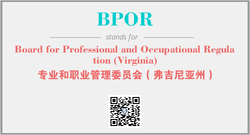 上述内容是“Board for Professional and Occupational Regulation (Virginia)”作为“BPOR”的缩写,解释为“专业和职业管理委员会(弗吉尼亚州)”时的信息,以及英文缩略词BPOR所代表的英文单词,其对应的中文拼音、详细解释以及在英文中的流行度和相关分类、应用领域及应用示例等。