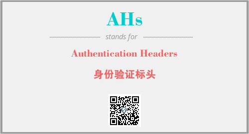 上述内容是“Authentication Headers”作为“AHs”的缩写,解释为“身份验证标头”时的信息,以及英文缩略词AHs所代表的英文单词,其对应的中文拼音、详细解释以及在英文中的流行度和相关分类、应用领域及应用示例等。