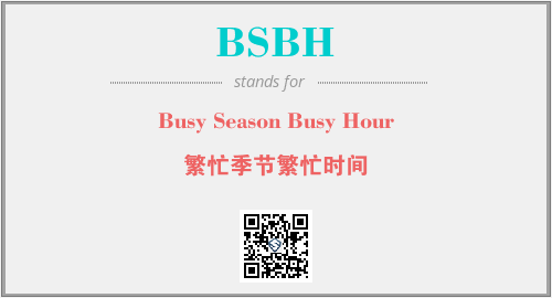 以上为Busy Season Busy Hour英文缩略词BSBH的中文解释,以及该英文缩写在英语的流行度、分类和应用领域方面的信息。