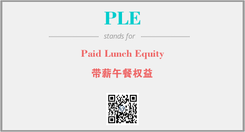 上述内容是“Paid Lunch Equity”作为“PLE”的缩写,解释为“带薪午餐权益”时的信息,以及英文缩略词PLE所代表的英文单词,其对应的中文拼音、详细解释以及在英文中的流行度和相关分类、应用领域及应用示例等。