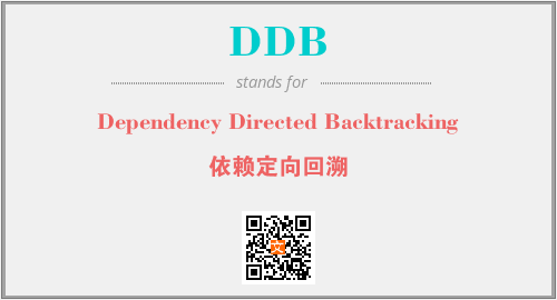 上述内容是“Dependency Directed Backtracking”作为“DDB”的缩写,解释为“依赖定向回溯”时的信息,以及英文缩略词DDB所代表的英文单词,其对应的中文拼音、详细解释以及在英文中的流行度和相关分类、应用领域及应用示例等。