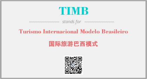 上述内容是“Turismo Internacional Modelo Brasileiro”作为“TIMB”的缩写,解释为“国际旅游巴西模式”时的信息,以及英文缩略词TIMB所代表的英文单词,其对应的中文拼音、详细解释以及在英文中的流行度和相关分类、应用领域及应用示例等。