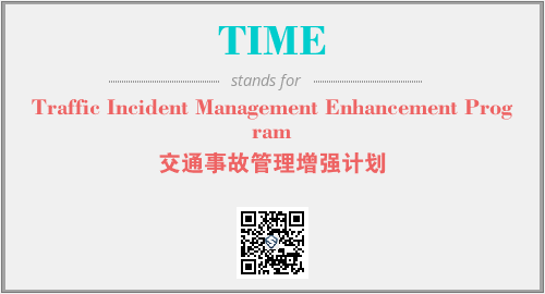 以上为Traffic Incident Management Enhancement Program英文缩略词TIME的中文解释,以及该英文缩写在英语的流行度、分类和应用领域方面的信息。