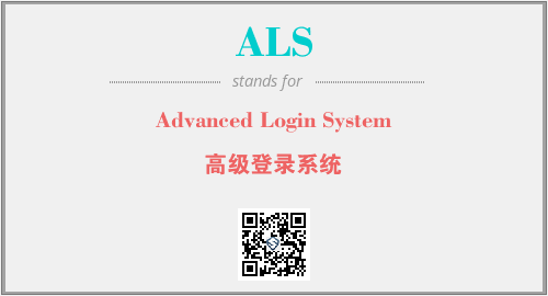 英文缩略词“ALS”经常作为“Advanced Login System”的英文缩写来使用,中文表示:“高级登录系统”。本文将详细介绍英文缩写词ALS所代表英文单词,其对应的中文拼音、详细解释以及在英语中的流行度。此外,还有关于缩略词ALS的分类、应用领域及相关应用示例等。