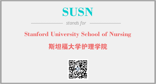 上述内容是“Stanford University School of Nursing”作为“SUSN”的缩写,解释为“斯坦福大学护理学院”时的信息,以及英文缩略词SUSN所代表的英文单词,其对应的中文拼音、详细解释以及在英文中的流行度和相关分类、应用领域及应用示例等。