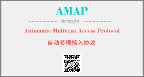上述内容是“Automatic Multicast Access Protocol”作为“AMAP”的缩写,解释为“自动多播接入协议”时的信息,以及英文缩略词AMAP所代表的英文单词,其对应的中文拼音、详细解释以及在英文中的流行度和相关分类、应用领域及应用示例等。