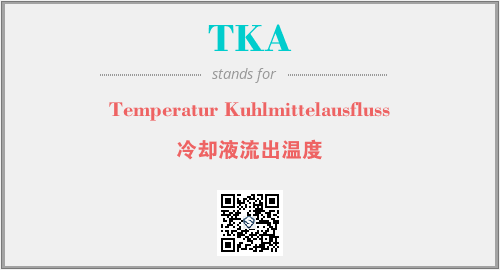 上述内容是“Temperatur Kuhlmittelausfluss”作为“TKA”的缩写,解释为“冷却液流出温度”时的信息,以及英文缩略词TKA所代表的英文单词,其对应的中文拼音、详细解释以及在英文中的流行度和相关分类、应用领域及应用示例等。