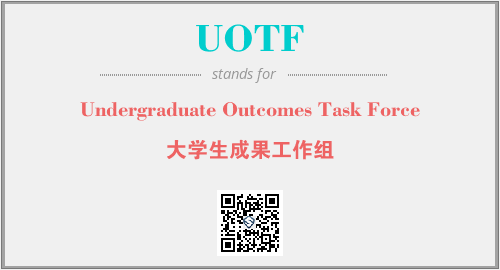 上述内容是“Undergraduate Outcomes Task Force”作为“UOTF”的缩写,解释为“大学生成果工作组”时的信息,以及英文缩略词UOTF所代表的英文单词,其对应的中文拼音、详细解释以及在英文中的流行度和相关分类、应用领域及应用示例等。