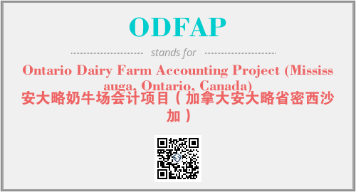 上述内容是“Ontario Dairy Farm Accounting Project (Mississauga, Ontario, Canada)”作为“ODFAP”的缩写,解释为“安大略奶牛场会计项目(加拿大安大略省密西沙加)”时的信息,以及英文缩略词ODFAP所代表的英文单词,其对应的中文拼音、详细解释以及在英文中的流行度和相关分类、应用领域及应用示例等。