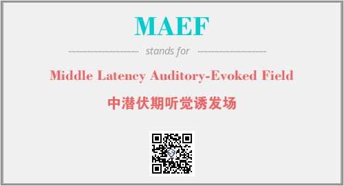 上述内容是“Middle Latency Auditory-Evoked Field”作为“MAEF”的缩写,解释为“中潜伏期听觉诱发场”时的信息,以及英文缩略词MAEF所代表的英文单词,其对应的中文拼音、详细解释以及在英文中的流行度和相关分类、应用领域及应用示例等。