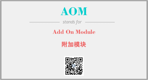 英文缩略词“AOM”经常作为“Add On Module”的英文缩写来使用,中文表示:“附加模块”。本文将详细介绍英文缩写词AOM所代表英文单词,其对应的中文拼音、详细解释以及在英语中的流行度。此外,还有关于缩略词AOM的分类、应用领域及相关应用示例等。