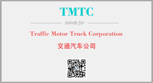 英文缩略词“TMTC”经常作为“Traffic Motor Truck Corporation”的英文缩写来使用,中文表示:“交通汽车公司”。本文将详细介绍英文缩写词TMTC所代表英文单词,其对应的中文拼音、详细解释以及在英语中的流行度。此外,还有关于缩略词TMTC的分类、应用领域及相关应用示例等。