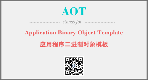 英文缩略词“AOT”经常作为“Application Binary Object Template”的英文缩写来使用,中文表示:“应用程序二进制对象模板”。本文将详细介绍英文缩写词AOT所代表英文单词,其对应的中文拼音、详细解释以及在英语中的流行度。此外,还有关于缩略词AOT的分类、应用领域及相关应用示例等。