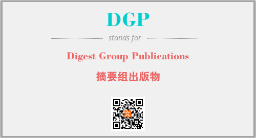 英文缩略词“DGP”经常作为“Digest Group Publications”的英文缩写来使用,中文表示:“摘要组出版物”。本文将详细介绍英文缩写词DGP所代表英文单词,其对应的中文拼音、详细解释以及在英语中的流行度。此外,还有关于缩略词DGP的分类、应用领域及相关应用示例等。