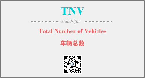 英文缩略词“TNV”经常作为“Total Number of Vehicles”的英文缩写来使用,中文表示:“车辆总数”。本文将详细介绍英文缩写词TNV所代表英文单词,其对应的中文拼音、详细解释以及在英语中的流行度。此外,还有关于缩略词TNV的分类、应用领域及相关应用示例等。