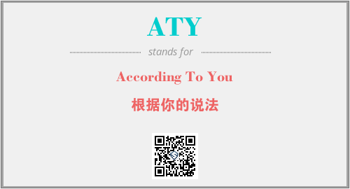 英文缩略词“ATY”经常作为“According To You”的英文缩写来使用,中文表示:“根据你的说法”。本文将详细介绍英文缩写词ATY所代表英文单词,其对应的中文拼音、详细解释以及在英语中的流行度。此外,还有关于缩略词ATY的分类、应用领域及相关应用示例等。