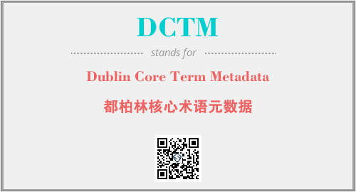 英文缩略词“DCTM”经常作为“Dublin Core Term Metadata”的英文缩写来使用,中文表示:“都柏林核心术语元数据”。本文将详细介绍英文缩写词DCTM所代表英文单词,其对应的中文拼音、详细解释以及在英语中的流行度。此外,还有关于缩略词DCTM的分类、应用领域及相关应用示例等。