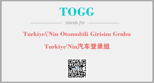 上述内容是“Turkiye\'Nin Otomobili Girisim Grubu”作为“TOGG”的缩写,解释为“Turkiye'Nin汽车登录组”时的信息,以及英文缩略词TOGG所代表的英文单词,其对应的中文拼音、详细解释以及在英文中的流行度和相关分类、应用领域及应用示例等。