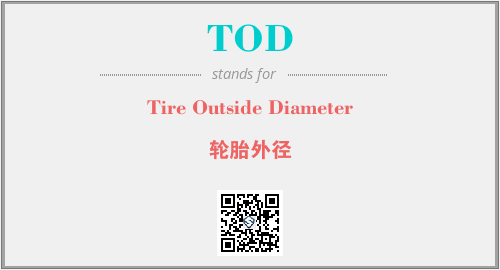 上述内容是“Tire Outside Diameter”作为“TOD”的缩写,解释为“轮胎外径”时的信息,以及英文缩略词TOD所代表的英文单词,其对应的中文拼音、详细解释以及在英文中的流行度和相关分类、应用领域及应用示例等。