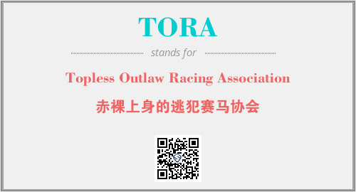 上述内容是“Topless Outlaw Racing Association”作为“TORA”的缩写,解释为“赤裸上身的逃犯赛马协会”时的信息,以及英文缩略词TORA所代表的英文单词,其对应的中文拼音、详细解释以及在英文中的流行度和相关分类、应用领域及应用示例等。