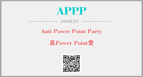以上为Anti Power Point Party英文缩略词APPP的中文解释,以及该英文缩写在英语的流行度、分类和应用领域方面的信息。