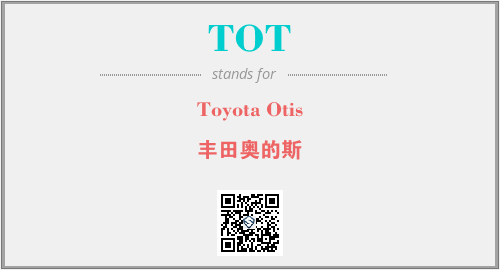 英文缩略词“TOT”经常作为“Toyota Otis”的英文缩写来使用,中文表示:“丰田奥的斯”。本文将详细介绍英文缩写词TOT所代表英文单词,其对应的中文拼音、详细解释以及在英语中的流行度。此外,还有关于缩略词TOT的分类、应用领域及相关应用示例等。