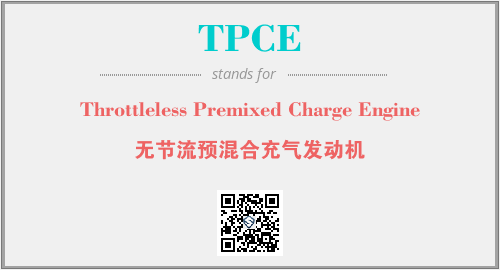 上述内容是“Throttleless Premixed Charge Engine”作为“TPCE”的缩写,解释为“无节流预混合充气发动机”时的信息,以及英文缩略词TPCE所代表的英文单词,其对应的中文拼音、详细解释以及在英文中的流行度和相关分类、应用领域及应用示例等。