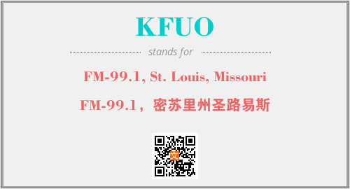 上述内容是“FM-99.1, St. Louis, Missouri”作为“KFUO”的缩写,解释为“FM-99.1,密苏里州圣路易斯”时的信息,以及英文缩略词KFUO所代表的英文单词,其对应的中文拼音、详细解释以及在英文中的流行度和相关分类、应用领域及应用示例等。