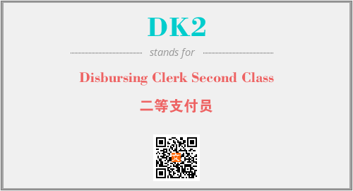 英文缩略词“DK2”经常作为“Disbursing Clerk Second Class”的英文缩写来使用,中文表示:“二等支付员”。本文将详细介绍英文缩写词DK2所代表英文单词,其对应的中文拼音、详细解释以及在英语中的流行度。此外,还有关于缩略词DK2的分类、应用领域及相关应用示例等。