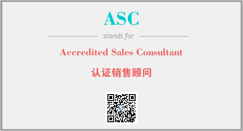 英文缩略词“ASC”经常作为“Accredited Sales Consultant”的英文缩写来使用,中文表示:“认证销售顾问”。本文将详细介绍英文缩写词ASC所代表英文单词,其对应的中文拼音、详细解释以及在英语中的流行度。此外,还有关于缩略词ASC的分类、应用领域及相关应用示例等。