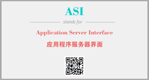 上述内容是“Application Server Interface”作为“ASI”的缩写,解释为“应用程序服务器界面”时的信息,以及英文缩略词ASI所代表的英文单词,其对应的中文拼音、详细解释以及在英文中的流行度和相关分类、应用领域及应用示例等。