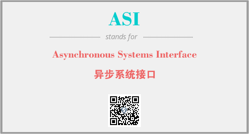 上述内容是“Asynchronous Systems Interface”作为“ASI”的缩写,解释为“异步系统接口”时的信息,以及英文缩略词ASI所代表的英文单词,其对应的中文拼音、详细解释以及在英文中的流行度和相关分类、应用领域及应用示例等。