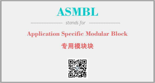 英文缩略词“ASMBL”经常作为“Application Specific Modular Block”的英文缩写来使用,中文表示:“专用模块块”。本文将详细介绍英文缩写词ASMBL所代表英文单词,其对应的中文拼音、详细解释以及在英语中的流行度。此外,还有关于缩略词ASMBL的分类、应用领域及相关应用示例等。