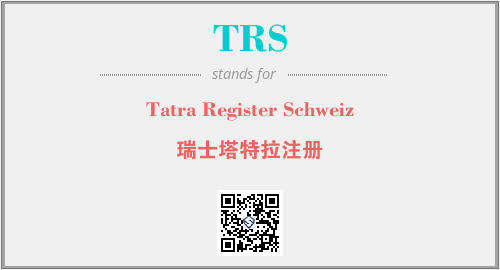 上述内容是“Tatra Register Schweiz”作为“TRS”的缩写,解释为“瑞士塔特拉注册”时的信息,以及英文缩略词TRS所代表的英文单词,其对应的中文拼音、详细解释以及在英文中的流行度和相关分类、应用领域及应用示例等。