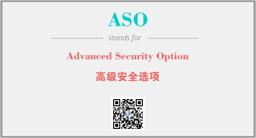 英文缩略词“ASO”经常作为“Advanced Security Option”的英文缩写来使用,中文表示:“高级安全选项”。本文将详细介绍英文缩写词ASO所代表英文单词,其对应的中文拼音、详细解释以及在英语中的流行度。此外,还有关于缩略词ASO的分类、应用领域及相关应用示例等。