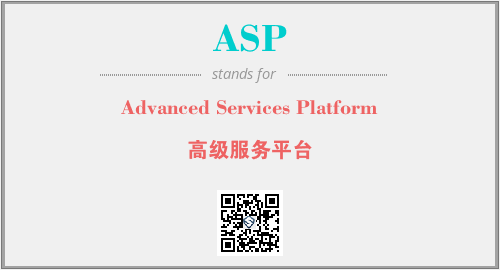 英文缩略词“ASP”经常作为“Advanced Services Platform”的英文缩写来使用,中文表示:“高级服务平台”。本文将详细介绍英文缩写词ASP所代表英文单词,其对应的中文拼音、详细解释以及在英语中的流行度。此外,还有关于缩略词ASP的分类、应用领域及相关应用示例等。